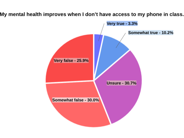 One interesting result from the student survey was that, despite many studies indicating that cell phones have a negative impact on mental health and that was one of the main reasons the Phone-Free School Act was passed, the majority of student respondents said that their mental health didn’t improve when they didn’t have access to their phone.
