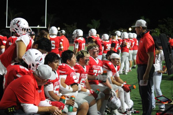Not only is the coaching staff for Fullerton football uniquely tight-knit under Karavedas’s leadership, but there are also many familial ties. Pete’s own father, Nick Karavedas (otherwise known as “Papa K”) is the varsity defensive back coach. They are not the only father-son duo on the team, however. Outside linebacking coach Jesse Smith and his son Jonoven Smith, the wide receiving coach, also work alongside one another.